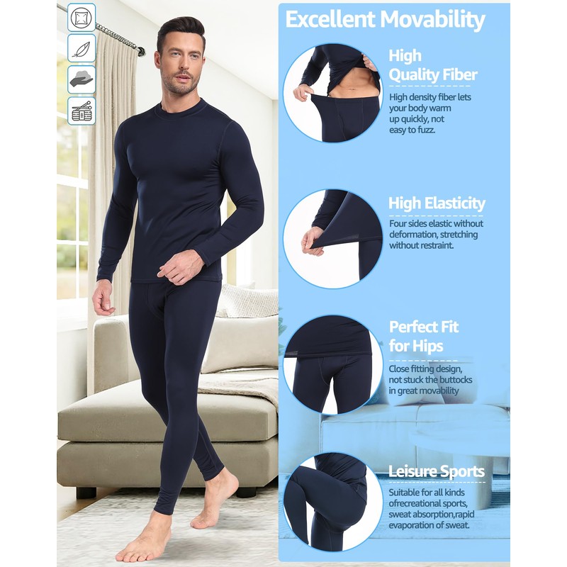 UNIQUEBLLA Long Johns Thermal Underwear Set for Men Thermal Base Layer Cold Weather Bottom Top Navy
