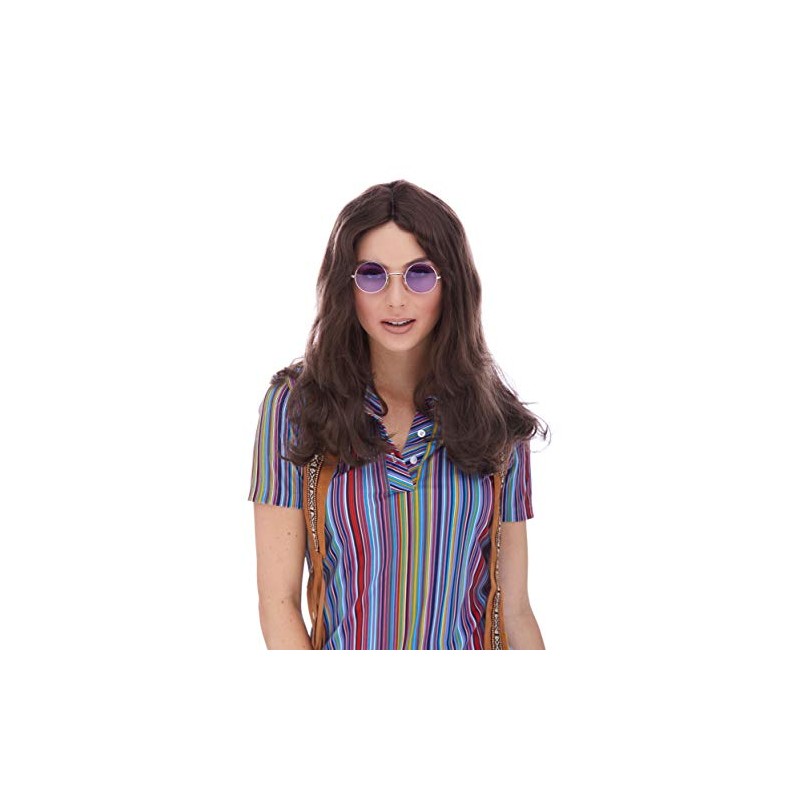 - Hippie Unisex Color 6 Brown - Sepia Wigs Deluxe 23" Long Medium length Woodstock High Quality Synthetic Middle Part Halloween Cosplay Disfraz Peluca