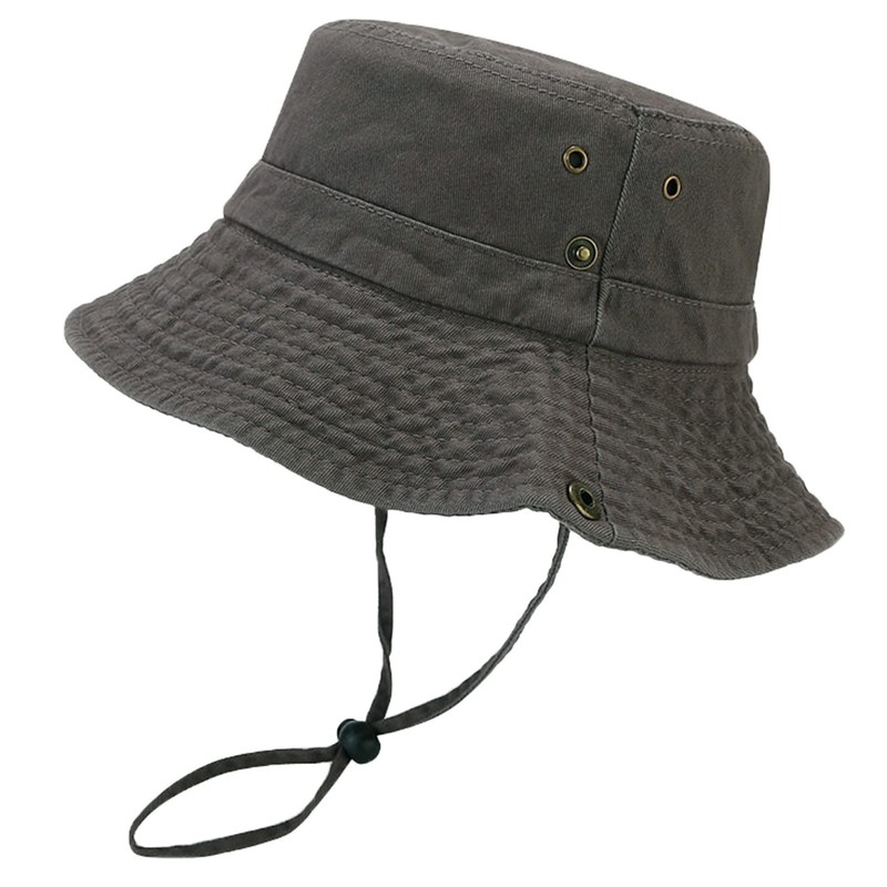 Unisex Cotton Boonie Hat Summer Outdoor Packable Fishing Bucket Hat Beach Sun Hat with String for Women Men (US, Alpha, One Size, Solid Dark Grey)