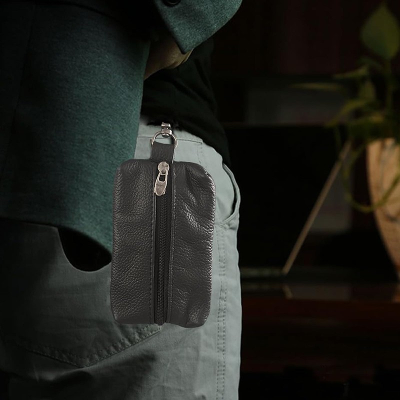 Unisex Genuine Leather Key Case Wallet Pouch Bag Keychain Holder with Key Ring & Zipper