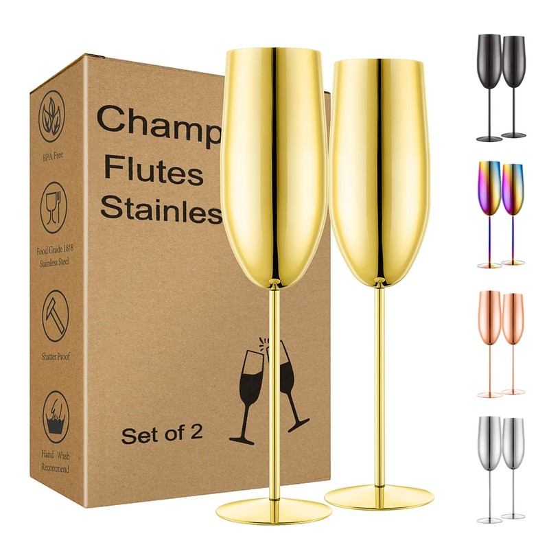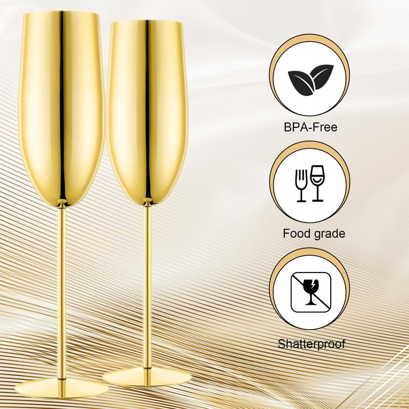 - Durable and sturdy: Our champagne flutes are made of food grade stainless steel material, the electroplated surface resists corrosion, ensuring they remain sturdy and unbreakable. Perfect for repeated use, these metal wine glass are ideal for any occasion