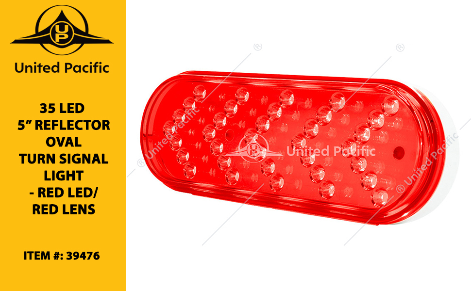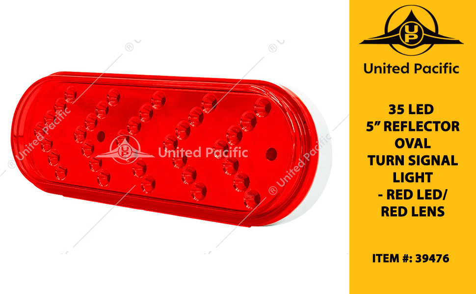 - INFORMATION: Our United Pacific 35 LED 5” Reflector Oval Sequential Turn Signal Light – Red LED/Red Lens – n goes through the same quality control as all our UP products offered. We’ve spent countless hours of research and development to produce the finest products, along with exceptional OE style pieces to fit your classic cars and trucks. We, at United Pacific, listen to our customers as we are always striving to update and create the newest items on the market.