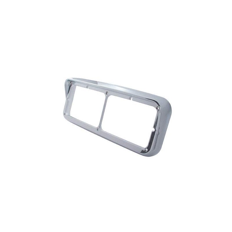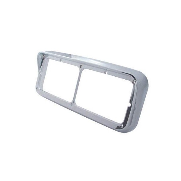 - FEATURES: The United Pacific Rectangular Dual Headlight Bezel features a high-quality injection molded plastic construction that’s been triple chrome plated for that premium finish. Our UP Headlight Bezel measures: 16 3/16"L x 6 15/16"H x 1 3/4”W. This was designed to be a direct replacement onto the existing OEM headlight housing. Our UP Headlight Bezel does feature a molded visor for that added touch.