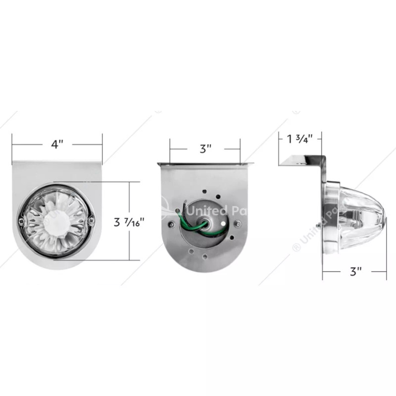 - FEATURES: The United Pacific Dual Function Glass Watermelon Light features a glass watermelon light kit assembled with a stainless-steel light bracket (UP item #20461). This UP Dual Function Glass Watermelon Light includes a LED 1157 bulb installed (UP item #36470) and includes easy wiring with 2 wire leads. Wiring Color Code: Metal=Ground, Black=Low, Green=High. The UP Dual Function Glass Watermelon Light comes fully assembled with hardware.