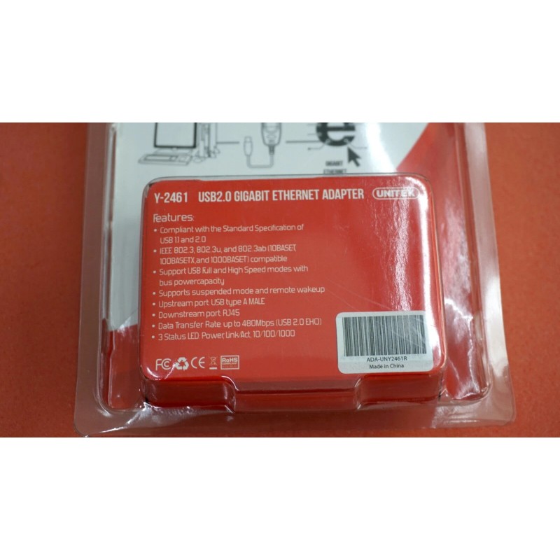 Unitek USB 2.0 Gigabit 6-Inch Ethernet Adapter Y-2461