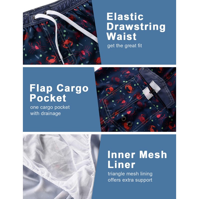 unitop Swimming Trunks Bathing Suit Men 7 Inch Crab Swim Trunks Blue-255 30