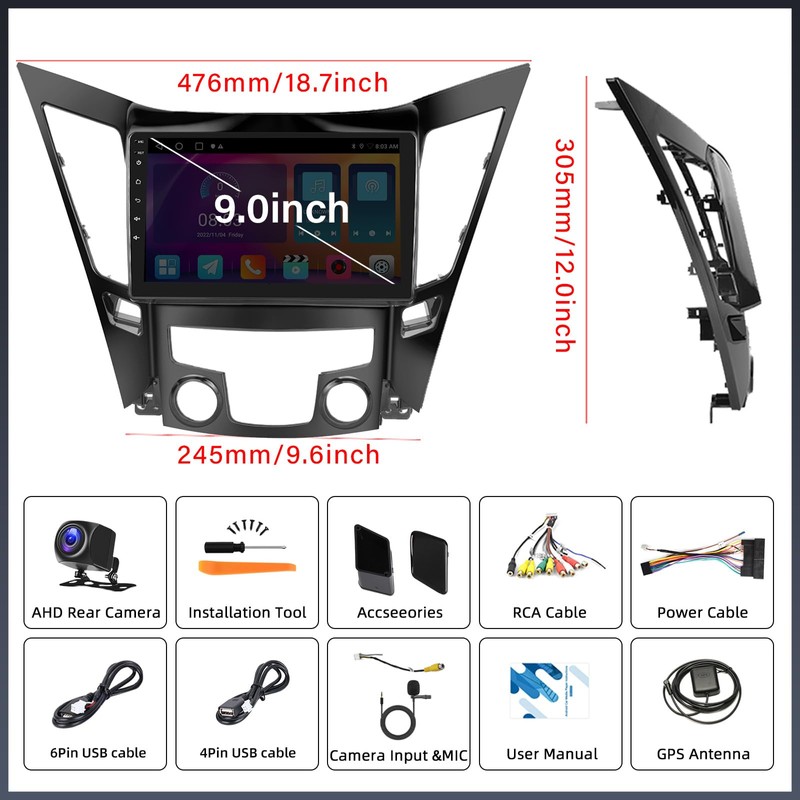 - 【Bluetooth Hands-free & FM/RDS, EQ Audio】9 inch Bluetooth car stereo features built-in Bluetooth and microphone for hands-free calling, Bluetooth audio streaming and auto download phone book. Android car radio can be added an external microphone. FM radio with 18 preset stations for listening news, music and sports etc. 9 inch car multimedia player for Hyundai Sonata 2010 with EQ sound setting, enjoy original sound of video or music