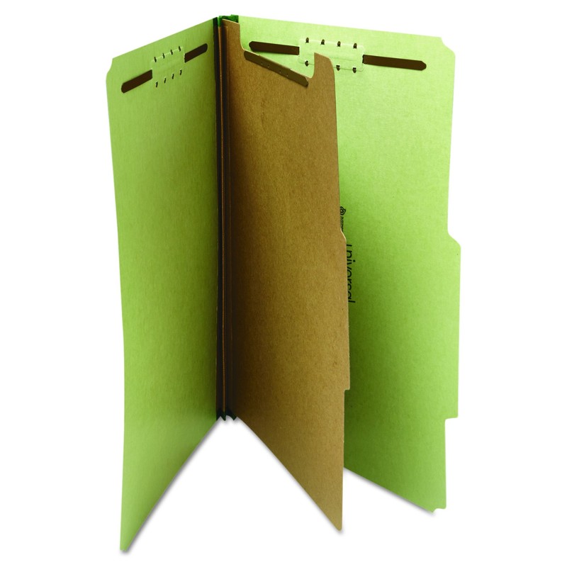 Universal 10251 Pressboard Classification Folder, Letter, Four-Section, Green (Box of 10)