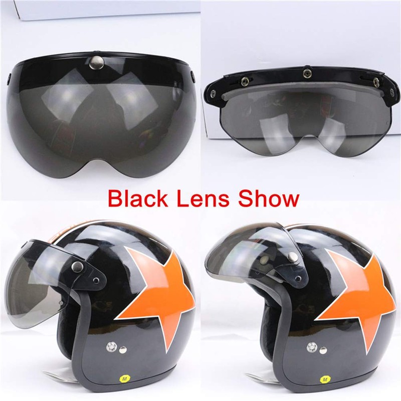 Universal 3 Snap Retro Helmet Visor Windproof Sun Half Face Motorcycle Helmets Visor (Black,Dark Brown)