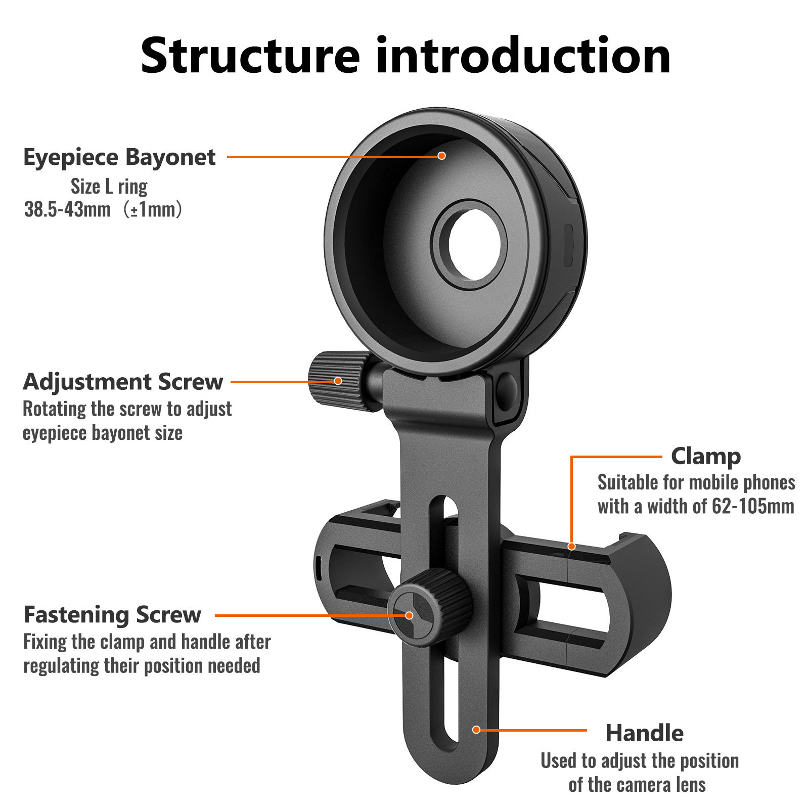 Universal 62-105mm Mobile Phone Camera Clip Mount Spotting Scope Adapter Focusing Bracket