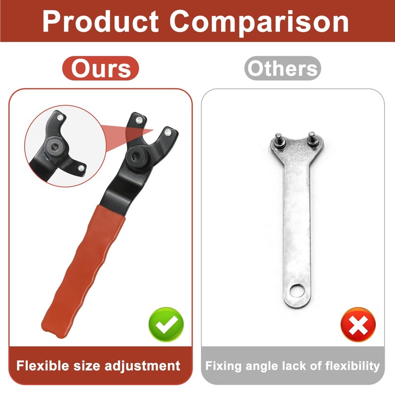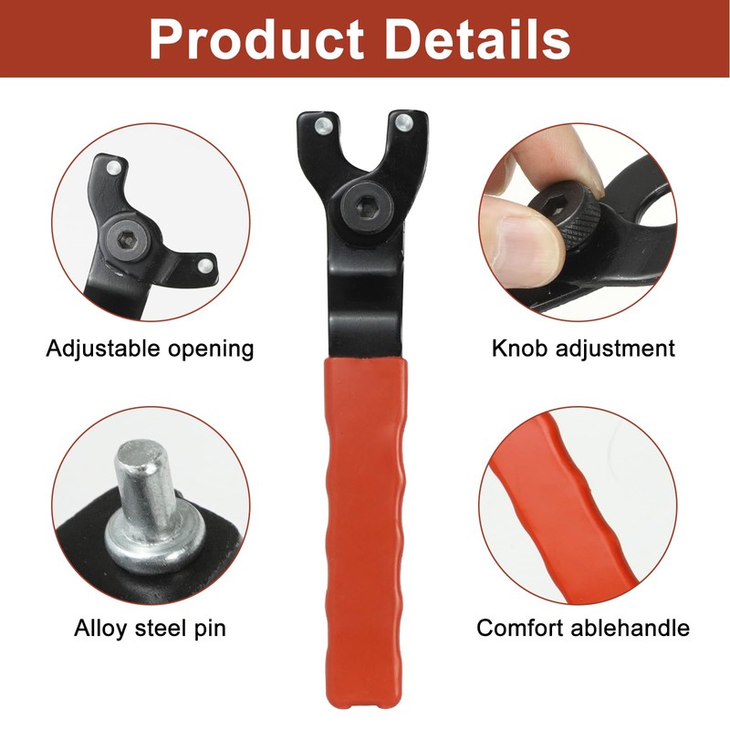 • Humanity design: the angle grinder pin wrench handle is covered with PVC coating and provides a comfortable grip. Adjustable pin wrench is equipped with a hexagonal key, which makes disassembly and assembly flexible and convenient.