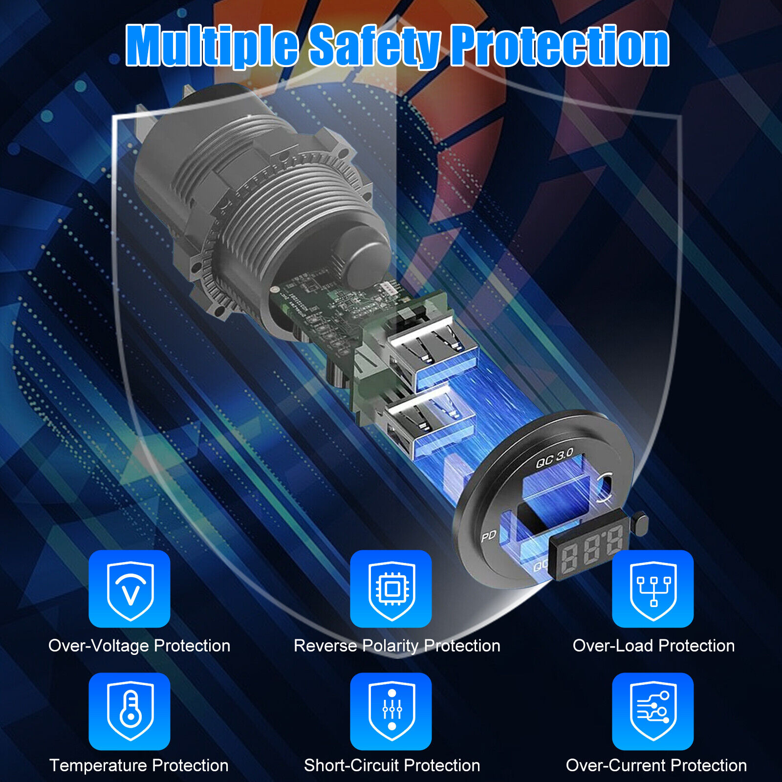This USB C car charger outlet socket is designed to deliver fast charging for all your devices. With a 55W Power Delivery (PD) port and dual 36W Quick Charge 3.0 (QC3.0) ports, you can recharge your devices at remarkable speeds.