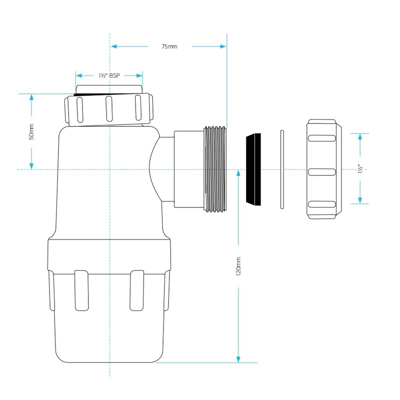 - Anti-Slip Ring: Equipped with an anti-slip ring, this bottle trap ensures secure installation, preventing leaks in bathroom sink waste and kitchen sink plumbing. Ideal for under sink pipe fittings and waste pipe seal applications.