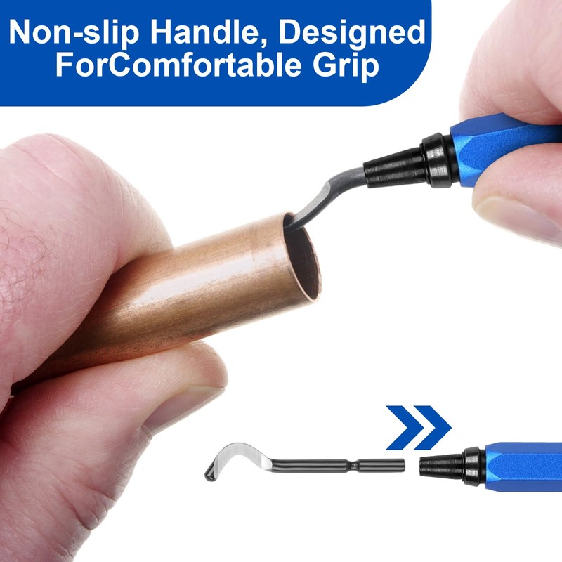 • VERSATILE FUNCTIONALITY Whether it's a straight edge, small hole, arc, groove or dent, this deburring tool handles everything with ease. This deburring tool is a must have for any home, plumbing company or workshop and simplifies any deburring task.