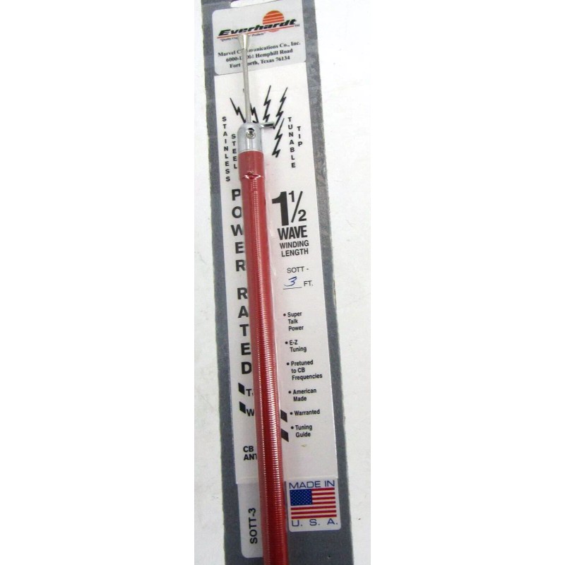 With a 1 1/2 wave winding length and a 3-foot height, the Everhardt SOTT-3 provides consistent and reliable communication range. It is pretuned to CB frequencies, making it convenient for immediate use, while the included tuning guide assists with any necessary fine-tuning. The antenna is built to deliver "Super Talk Power," ensuring clear and strong signal quality.