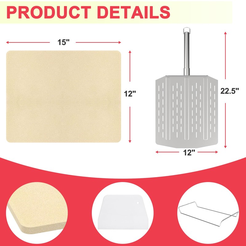 - Dual-Purpose Carrying Rack: Our stainless steel pizza rack is not only perfect for transporting your delicious creations but also doubles as a pizza stone holder! Additionally, the set includes a stainless steel pizza spatula and a plastic scraper for ultimate convenience. Grilling accessories have never been this functional