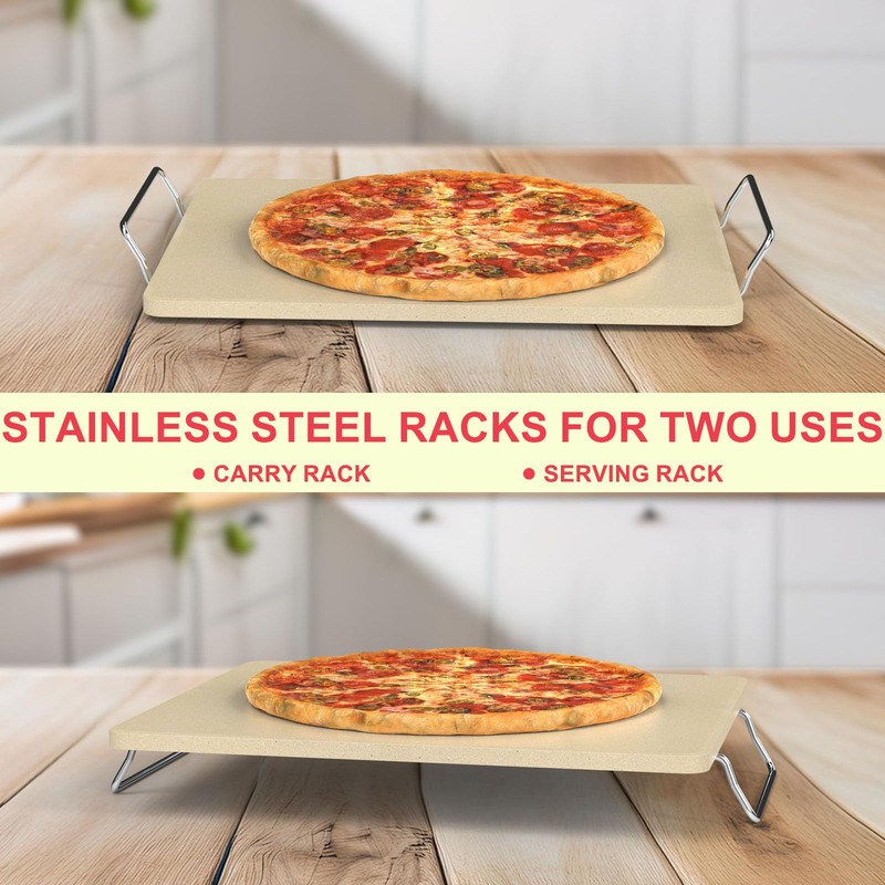 - Versatile Cooking Options: Elevate your cooking game with our Pizza Stone Set, perfect for any setting! This versatile pizza stone can be used in pizza ovens, conventional ovens, gas and charcoal grills, and traditional outdoor grills. Enjoy delicious, homemade pizzas no matter your setup