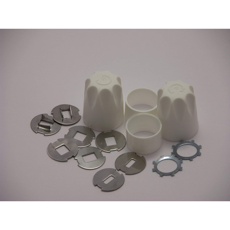 This product consists of 2 caps, 2 3-way collars and 2 sets of drive disks to enable any combination of Lockshield or Wheelhead caps to be fitted.