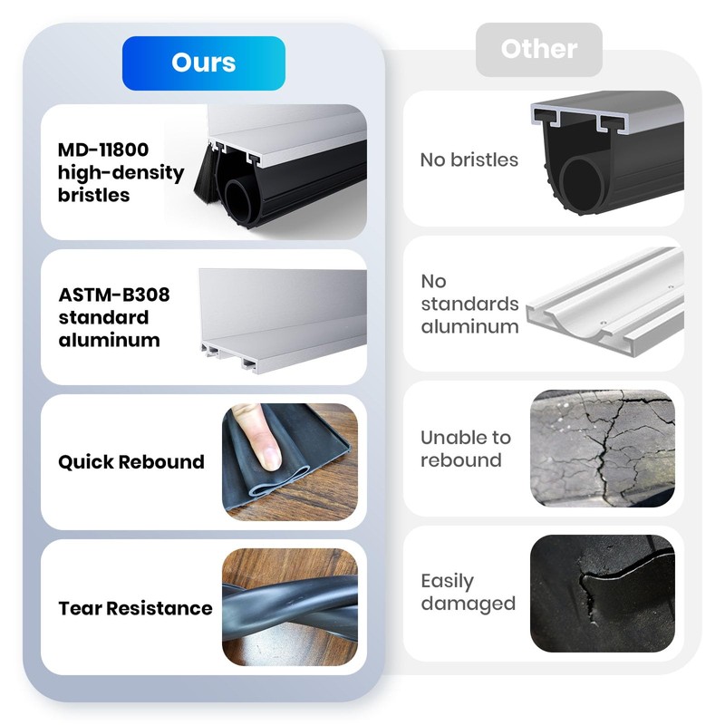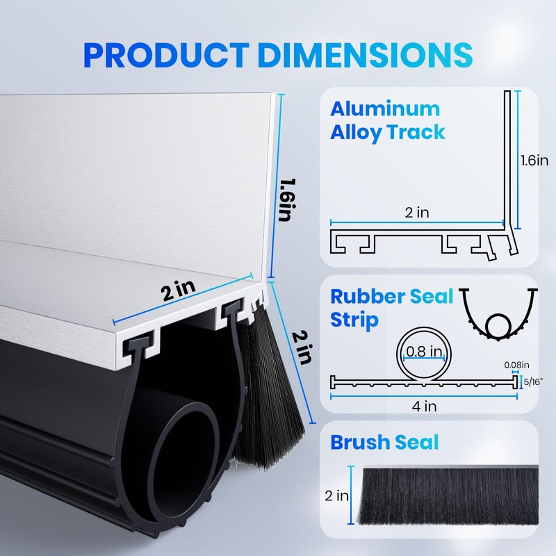• 【Garage Door Seal】V2.0 Enhanced Version: On the basis of the traditional garage door seals bottom rubber, features an added 2-inch brush and an L-shaped aluminum track retainer base. More effectively blocks dust and debris while ensuring a snug fit with your garage door, maintaining stability and aesthetics, protects your garage door from damage. AQOVOR garage door seals are meticulously designed in every detail, the perfect choice for achieving a garage door bottom seal