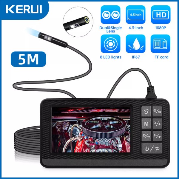 Universal Industrial Endoscope Borescope 1080P HD 4.3'' Screen 8mm Inspection Snake Camera