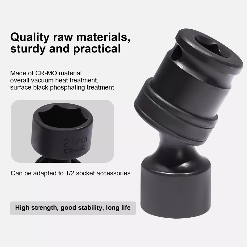 Are you still troubled by the bolts in difficult positions? Our universal sleeve is specifically designed for this situation. Its maximum tilt angle is 24 °, and a set of 15 different types of sleeves can help you unscrew bolts of different types in difficult-to-reach positions. Come on and take it to make your work more effortless.