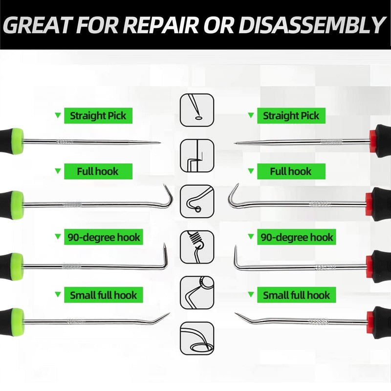 - MACHINE MUST HAVE - Invest in a well-made hook and pick set for a busy garage and auto workshop. Ideal for assembly, repair or removal of small parts.