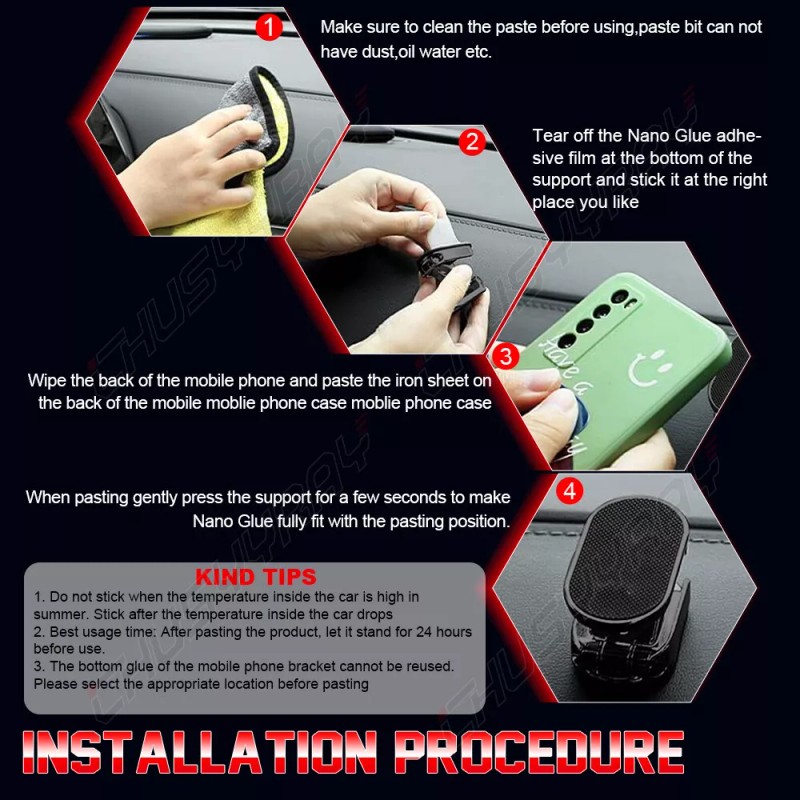 - Items Included: 1 phone holder,2 metal plate magnet,1 sticker