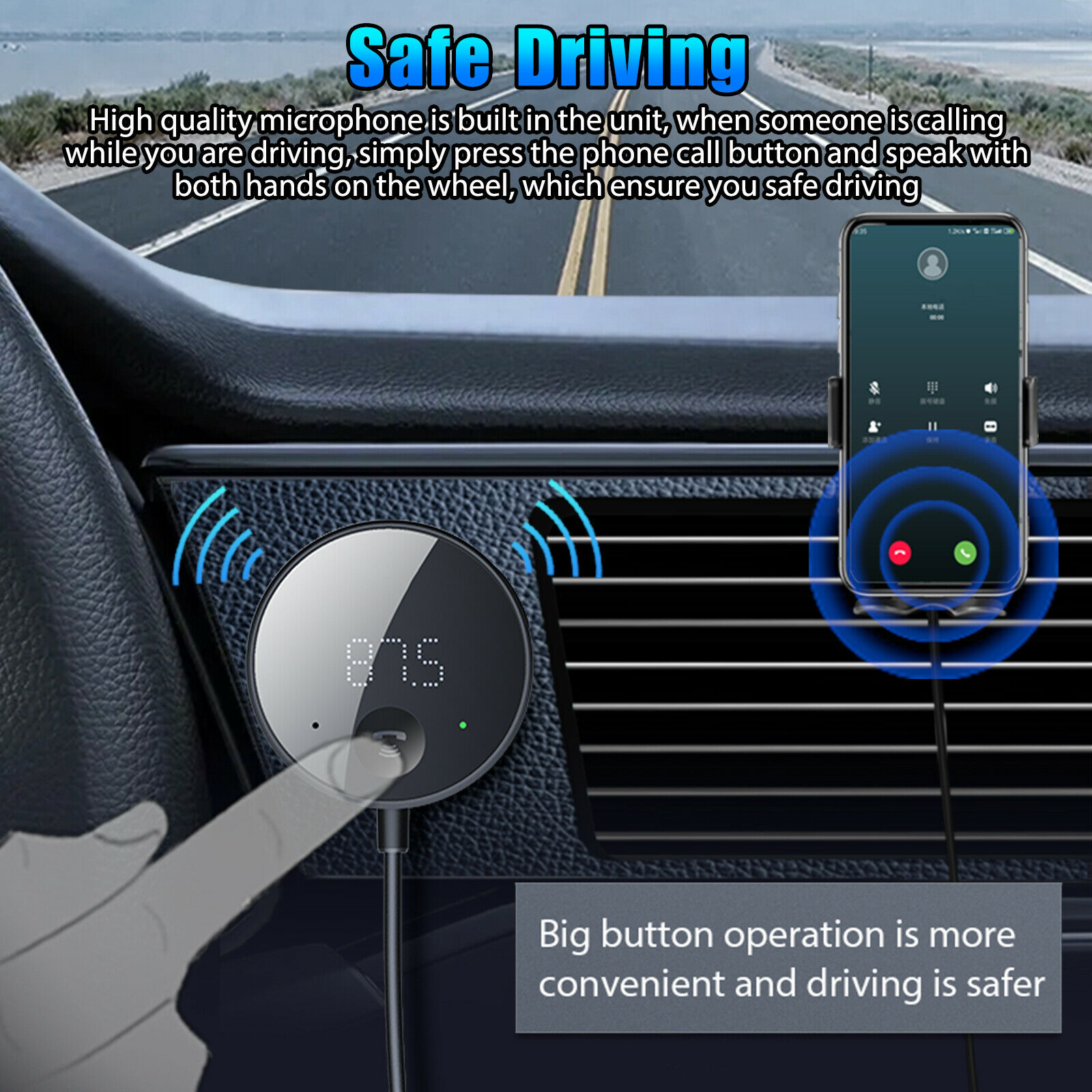 Safe Driving: High quality microphone is built in the unit, when someone is calling while you are driving, simply press the phone call button and speak with both hands on the wheel, which ensure you safe driving. Support TF card MP3 music play. Directly plug and play.