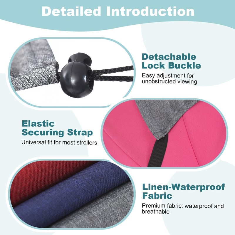 - All-weather performance: Baby stroller sunshade cover with water-resistant coating sheds light rain while remaining breathable. Wind-tested construction stays firmly in place during breezy conditions, and the tear-resistant fabric withstands daily use without fraying