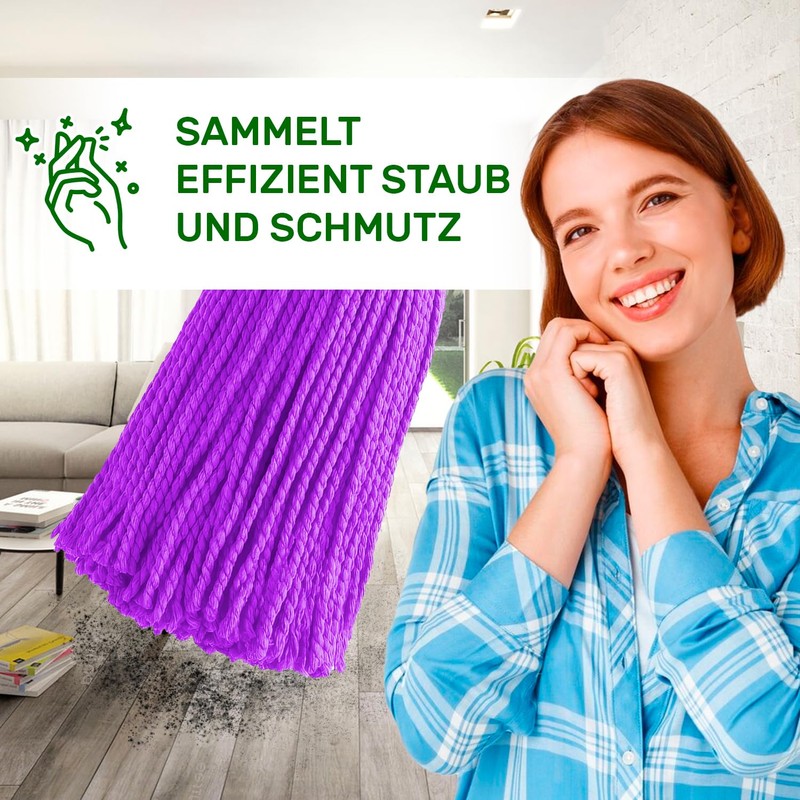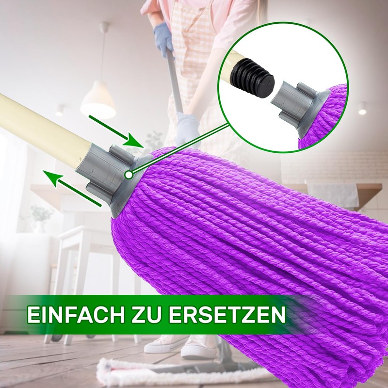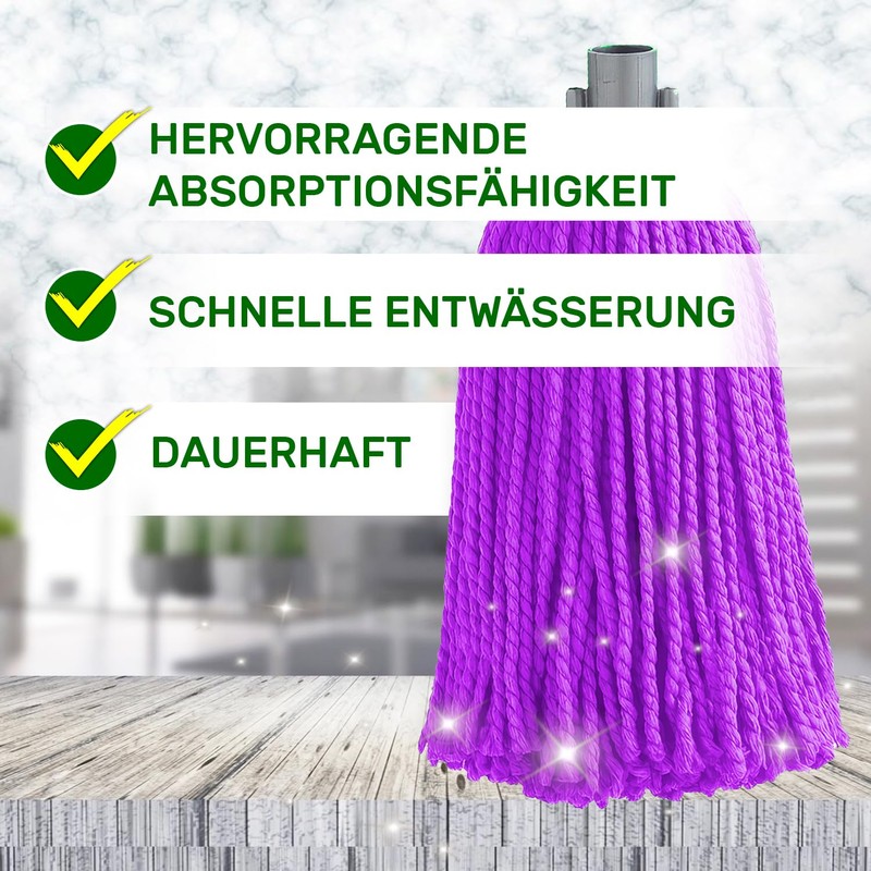 - Features: microfibre mop head has a length of 30 cm and weight 160 g. The colour of the mop is purple. Composition: 100% polyester microfibre