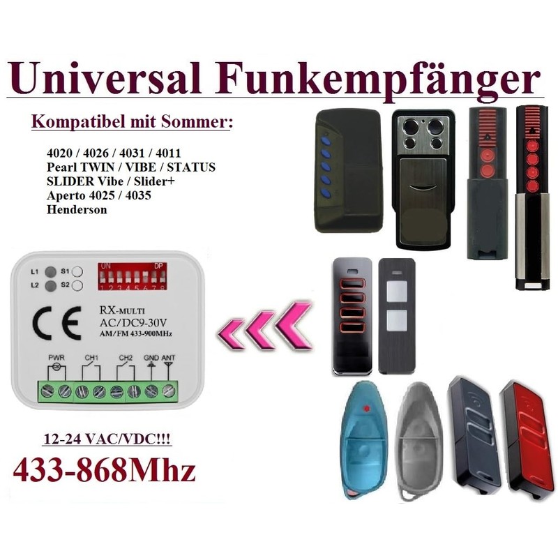 Universal Receiver Compatible with Sommer 4020/4026 / 4031/4025 / 4035 / 4011V001 868.8 MHz Remote Control 2 Channels Radio Receiver 433-868MHz Rolling/Fixed Code 12 - 24 VAC/DC Receiver