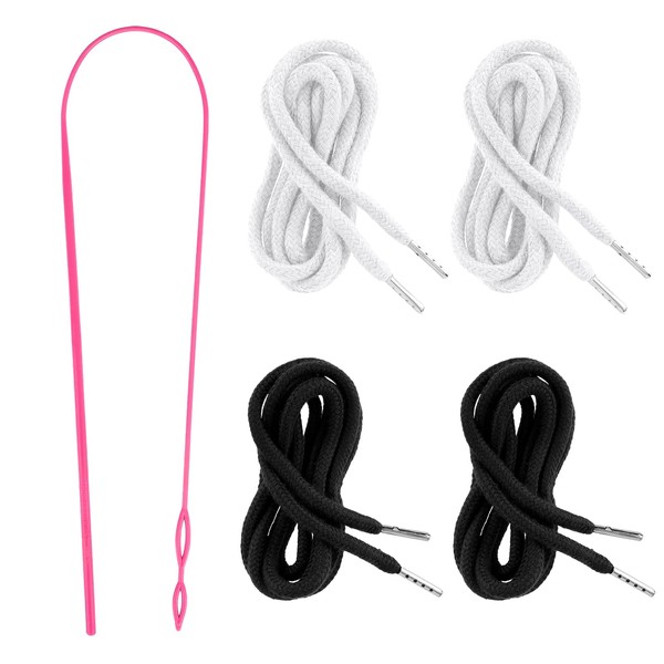 Universal Replacement Drawstring Cords 4 Pcs Replacement Drawstring for Sweatpants 49 Inch Replacement Clothing Drawstring with Easy Threader for Sweatpants Shorts Hoodies (Black White)