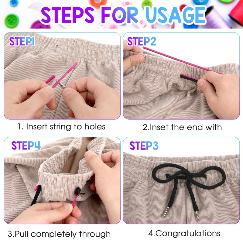• User-Friendly Threaders: The threaders are designed for ease of use with their flexible plastic constructions. They facilitate hassle-free threading of both thick and replacement drawstring for shortss, saving time and effort in garment maintenance.