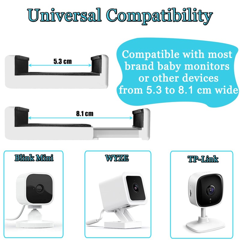 - Adjustable clamp holder offers wide compatibility, not only for Blink Mini, for TP-Link, for WYZE security camera, but also with a variety of video camera or other devices ranging from 5.3 to 8.1cm in width.