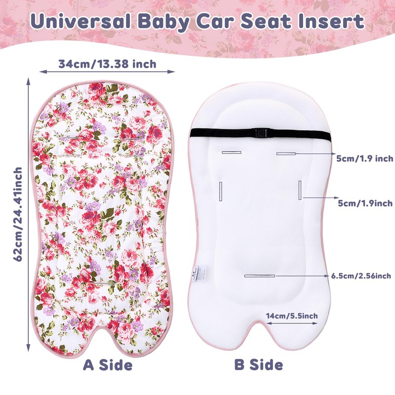 Universal Stroller & Car Seat Pad - 3-Point & 5-Point Harness Compatible, Breathable Baby Carrier Cushion for Strollers, Infant Seats, Carrycot, High Chair - Newborn to Toddler (Flower)