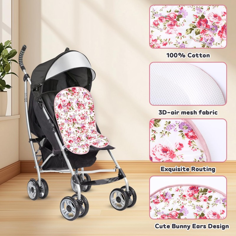 - 【Cute Design】 Our stroller mat comes with cute ear design, different colors and printed patterns to choose from, which are suitable for both boys and girls
