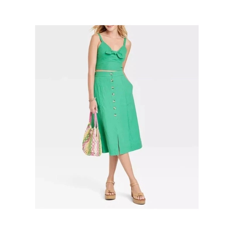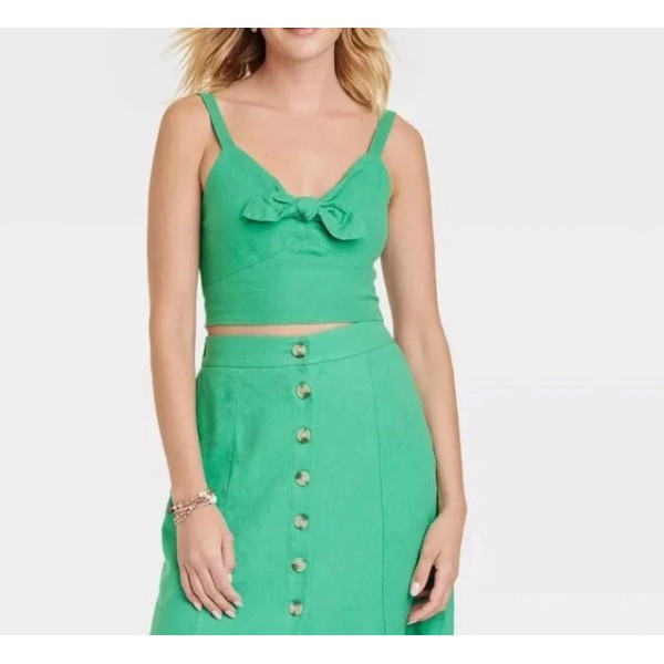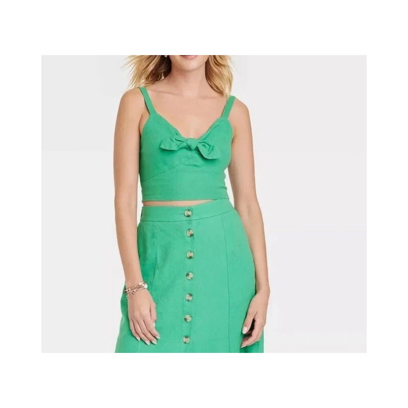 Universal Thread Women’s Universal Thread Linen Blend Cropped Bow Front Tank Green L Retail $20