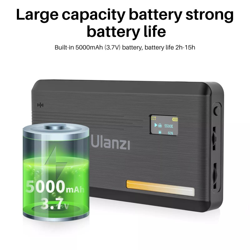 - Large-capacity Battery: The camera light has a built-in 5000 mAh battery, and the continuous working time is 2h to 15h, use for your video camera as long as you want for longer projects. Great for travel vlogging or working on the go.