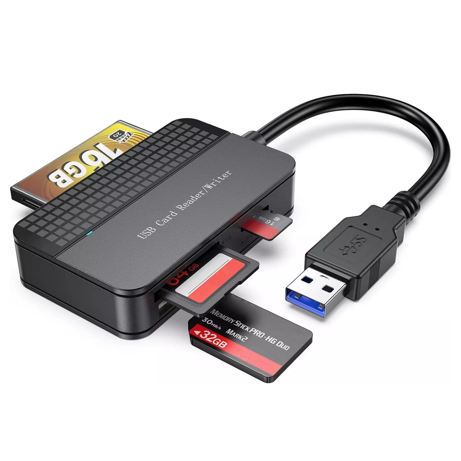 Compatible with 9 different Memory Card, SD Card / SDHC / SDXC / Micro SD / Micro SDHC / Micro SDXC / MS Duo/ MS Pro Duo / CF Card. USB 3.0 for computer accessory and transferring at 5120Mbps which allows you to transfer HD movies or files in just seconds. USB 3.0 SD Card reader is compatible with for Windows XP/Vista/7/8/8.1/10, for Mac OS, Linux, for Chrome OS, etc.