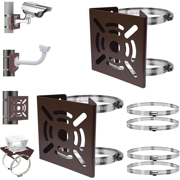 Universal Vertical Pole Mount Adapter with 2 Loops Brown Stainless Steel Wall Mounting Bracket for CCTV Security Camera Ptz Dome Indoor Outdoor AP Access Point Client CPE (2 Pack)