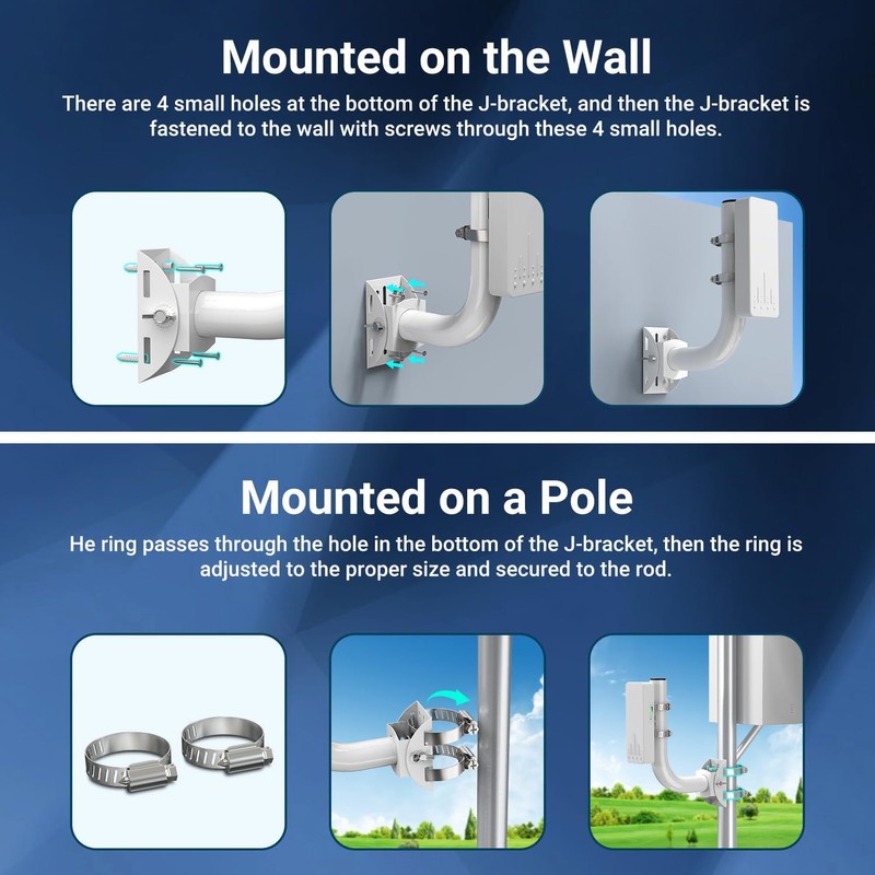 - 1. **Dual Installation Options:** This versatile wireless bridge bracket mount can be easily installed on either a pole or wall, giving you flexibility to choose the method that best suits your needs. Both installation processes are straightforward and user-friendly.