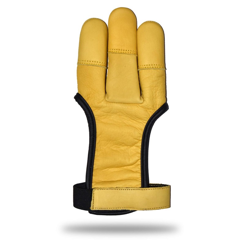 - THREE FINGER DESIGN: The classic three-finger design archery shooting gloves is light-weight, easy to put on, suitable for right-handers and left-handers. Have a non-slip Cow Hide leather pad at the fingertips for extra protection, that eliminate any pinching or discomfort.