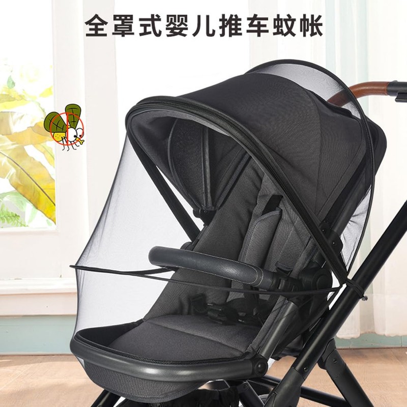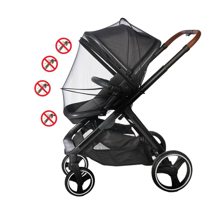 Universelles Moskitonetz für Kinderwagen, schwarzer Netzbezug mit elastischem Rand