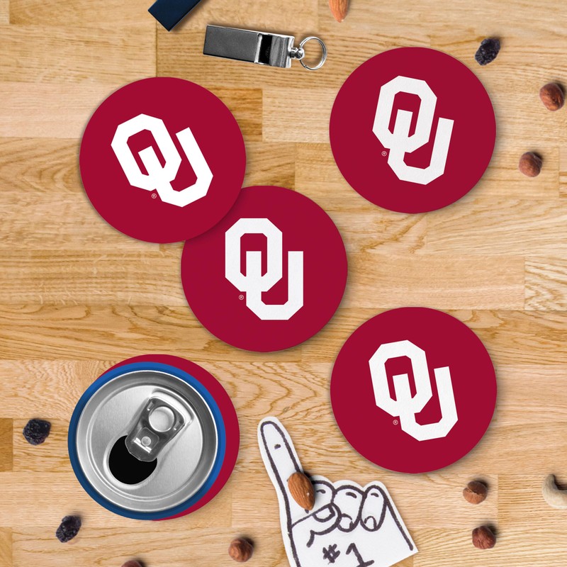 - Comes as a matching pack of 12; Let everyone know who you root for with these University of Oklahoma coasters; Features the Sooners logo with pride