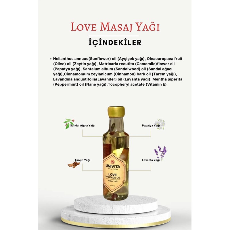 Univita Love Afrodizyak Aromaterapi Masaj Yağı Cilt Besleyici Nemlendirici Bitkisel Vücut Body Oil 100 ml