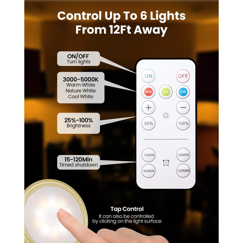 - Cordless Lights for Art with Timing function & Adjustable Brightness: The remote control features a timer function allowing automatic shutdown after 15/30/60/120 minutes. You can easily switch between five brightness levels (20%-40%-60%-80%-100%) using the remote control