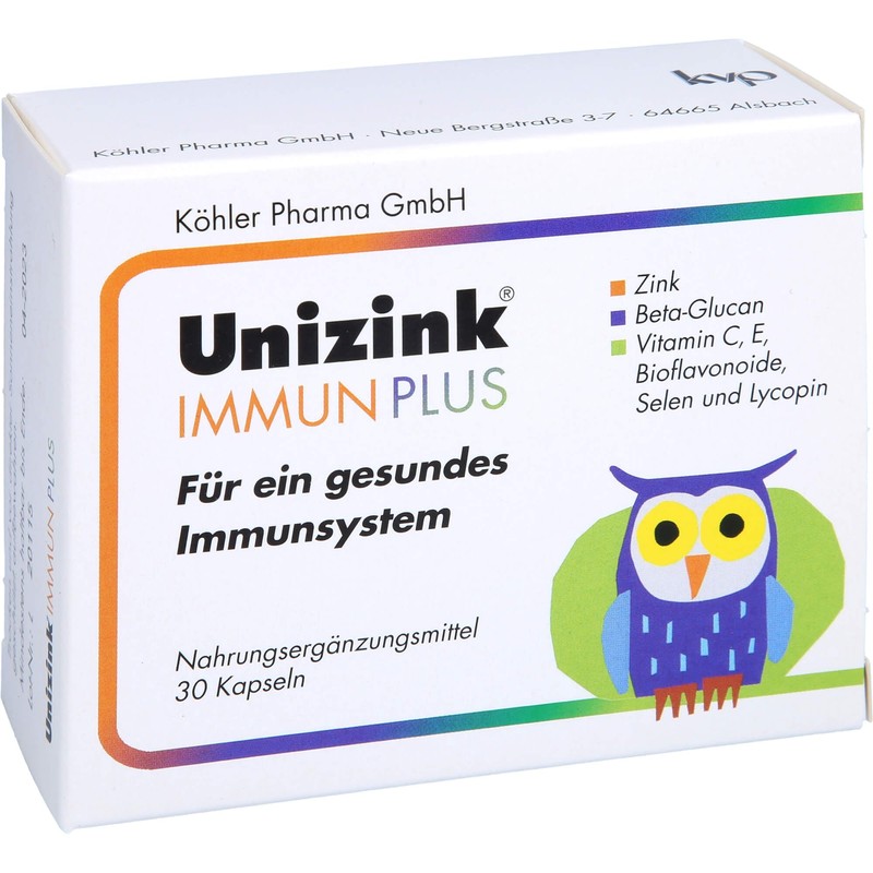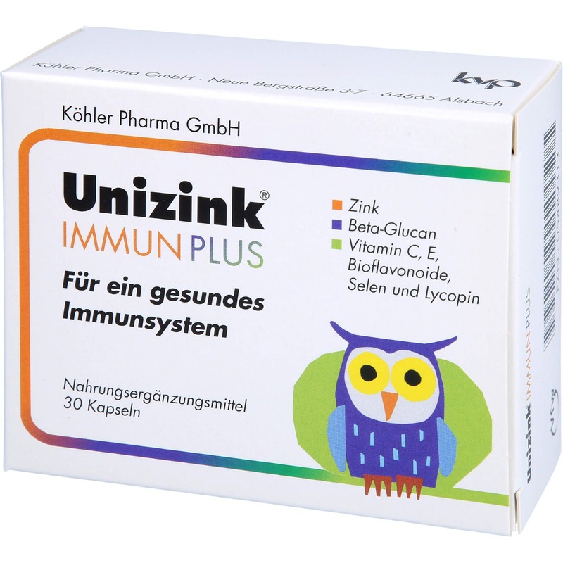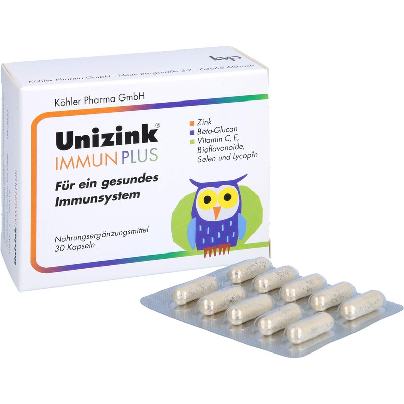 Unizink Immune Plus capsules - for your healthy immune system: Zinc is the basic element for a healthy immune system by positively influencing the body's own production of important defence cells (T cells). ✓ Beta-glucan belongs to the group of multiple sugars. Among nutritionists there is an increasing interest in this natural substance as it can activate the most important immune cells of our body, the macrophages. Vitamins C and E contribute to the breakdown of free radicals and thus support the body's own defence system. ✓ Citrus bioflavonoids are one of the secondary plant substances. They prevent the formation of free radicals and other aggressive oxygen compounds. Bioflavonoids regenerate other antioxidants such as vitamin C or vitamin E and thus enhance their antioxidant effect. Selenium, as a co-factor of the enzyme glutathione peroxidase, builds up an effective protection system against the action of free radicals. Lycopene belongs to the group of carotenoids, and is also a powerful antioxidant that helps support healthy immune function.