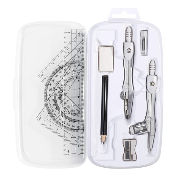 - A Practical Compass Geometry Set: Metal compasses will not bend, Ergonomically designed compass head is comfortable to hold, Universal Holder Compass work with any standard sized pencil or pen