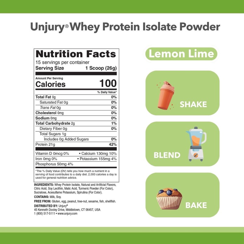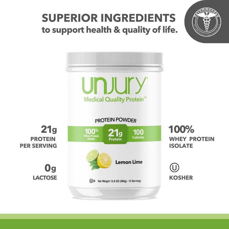 - High Quality Protein Powder: Discover delicious with UNJURY Lemon Lime high protein drink mix. UNJURY is high Quality Protein made with 100% whey protein isolate, the highest-quality protein you can buy – anywhere, and Quality Tastes Better.*