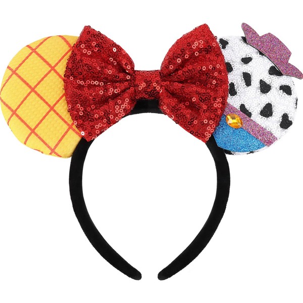 UNKJIN Mouse Ears Headband, Sequin Ears Headband with Splicing Ears, Glitter Hairband Party Decoration for Women (Yellow Cowboy)